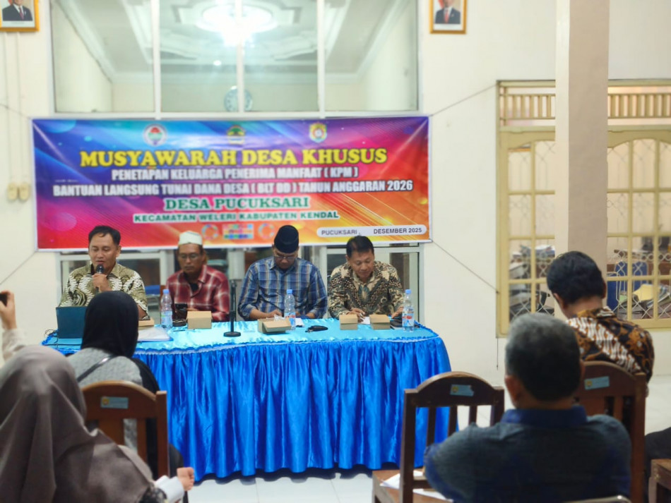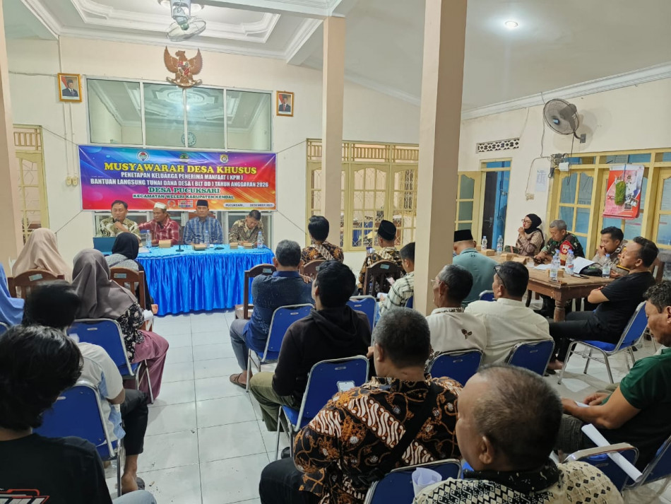 ( Pucuksari ) Rabu 31 Desember 2025 Musyawarah Desa Khusus (Musdesus) untuk penetapan Keluarga Penerima Manfaat (KPM) Bantuan Langsung Tunai Dana Desa (BLT DD) tahun anggaran 2026 Di laksanakan di desa Pucuksari yang di hadiri oleh Pihak Kecamatan,Pemdes ,BPD,RT,RW.dan Lembaga lain ,Babinsa,Bhabinkabtimas,Bidan desa merupakan tahapan krusial yang dilakukan pada akhir 2025 hingga awal 2026. Berdasarkan regulasi terbaru, fokus utama penggunaan Dana Desa 2026 mencakup penanganan kemiskinan ekstrem dan dukungan ekonomi melalui Koperasi Desa Merah Putih.